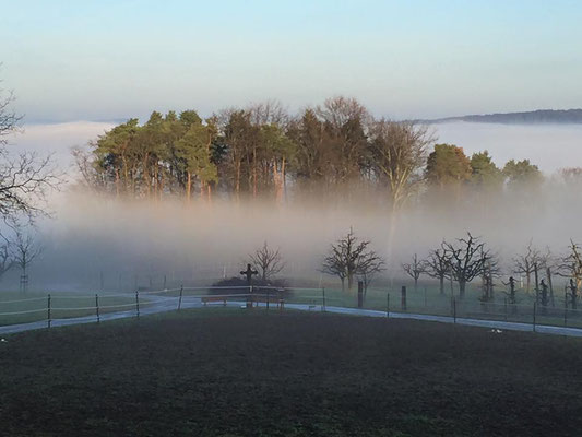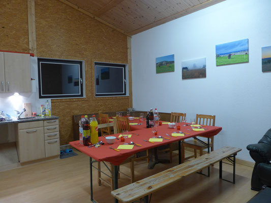 Den zweibeinigen Pensionären bieten wir einen gemütlichen, im Winter beheizten Kaffeeraum und geräumige, abschliessbare Sattelschränke in einem ebenfalls geheizten Raum. Der Grill- und Verweilplatz mit wunderbarer Sicht über das schöne Leimental lädt zum geselligen Beisammensein ein und wird vor allem im Sommer rege genützt. Nach dem Reiten wird die Geselligkeit gepflegt, es wird grilliert, Kaffeklatsch gehalten und der Gemütlichkeit gefrönt. Das schönste an diesem Grillplatz ist die Aussicht - er ist umgeben von Wald, Weiden mit friedlich grasenden Pferden und einer tollen Weitsicht auf das Leimental. Wenn es die Temperaturen nicht zulassen, die schöne Aussicht draussen zu geniessen, darf gerne auch im gemütlichen Reiterstübli zusammen gesessen werden.