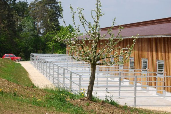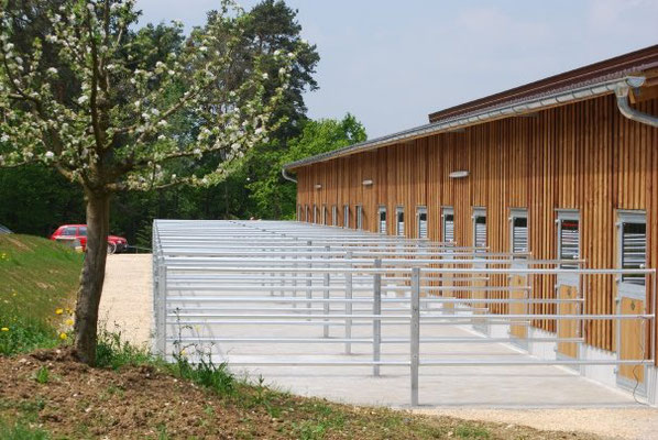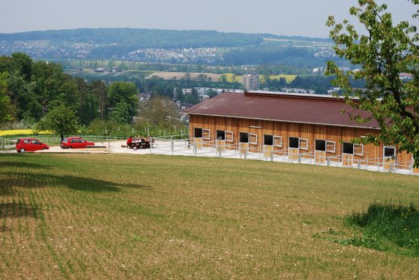 Wir sind ein familiärer Pensionsbetrieb an wunderschöner Lage am Waldrand von Ettingen. Die im 2009 neu erstellten Stallungen bieten grosse und helle Paddockboxen sowie einige Innenboxen ohne Paddock. Die grosszügigen Boxen bieten viel Platz, Licht und Luft. Das Futter sowie Stroh und Heu werden selber hergestellt, damit wir jederzeit eine gute Qualität anbieten können.