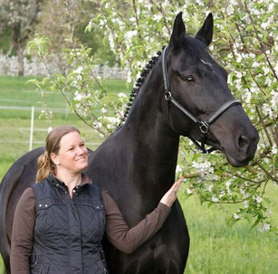Ich habe Sunflower, genannt Sunny, seit sie 3 jährig ist, wir haben sie direkt vom Züchter gekauft. Mit diesem Pferd wird es einem nie langweilig und da sie sehr vif im Kopf ist, will sie auch ständig beschäftigt werden. Ist ihr Kopf nicht genug beschäftigt, kann sie auf sehr kreative Ideen kommen! Sunny ist temperamentvoll und bewegungsfreudig, dabei hat sie einen ziemlich Dickschädel und hinterfragt ihre Reiter ständig, und das macht das Reiten und den Umgang mit ihr nicht einfach, aber sehr lehrreich. Mitdenken ist gefragt und da Sunny sensibel reagiert und rasch lernt, macht sie in der Ausbildung schnell Fortschritte. Man muss einfach gut aufpassen, dass sie nicht das Falsche lernt... Aufgrund ihre guten Abstammung ist Sunny vielseitig einsetzbar, ich reite sie deshalb sowohl ab und zu auch im Dressurviereck so wie auch in Gymnastikstunden über Stangen und Hindernisse, bei beidem ist sie voll motiviert bei der Sache.