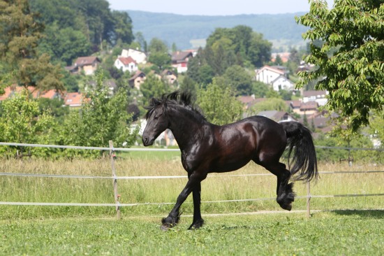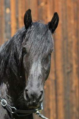Tiede ist ein verschmuster, "bananensüchtiger" Kerl und ist grundsätzlich sehr neugierig, wenn es um andere Tiere geht (insbesondere Esel haben es ihm angetan, keine Ahnung, weshalb). Im Stallgang muss er immer erst einmal überall die Nase in die Boxen halten und seinen Stall-Kumpanen "Hallo" sagen, was mehr oder weniger geschätzt wird von seinen Artgenossen. Beim Ausreiten sind wir generell die "Schlussliechtli", was uns aber gaaaar nicht stört... Tiede lässt sich wirklich nicht leicht aus der Ruhe bringen, typisch Friese halt. Früher sind wir öfters Kutsche gefahren oder haben mal ein einem Patrouillenritt mitgemacht, ansonsten sind wir doch eher Freizeitreiter und geniessen die gemütlichen Ausritte in Ettingen und Umgebung.